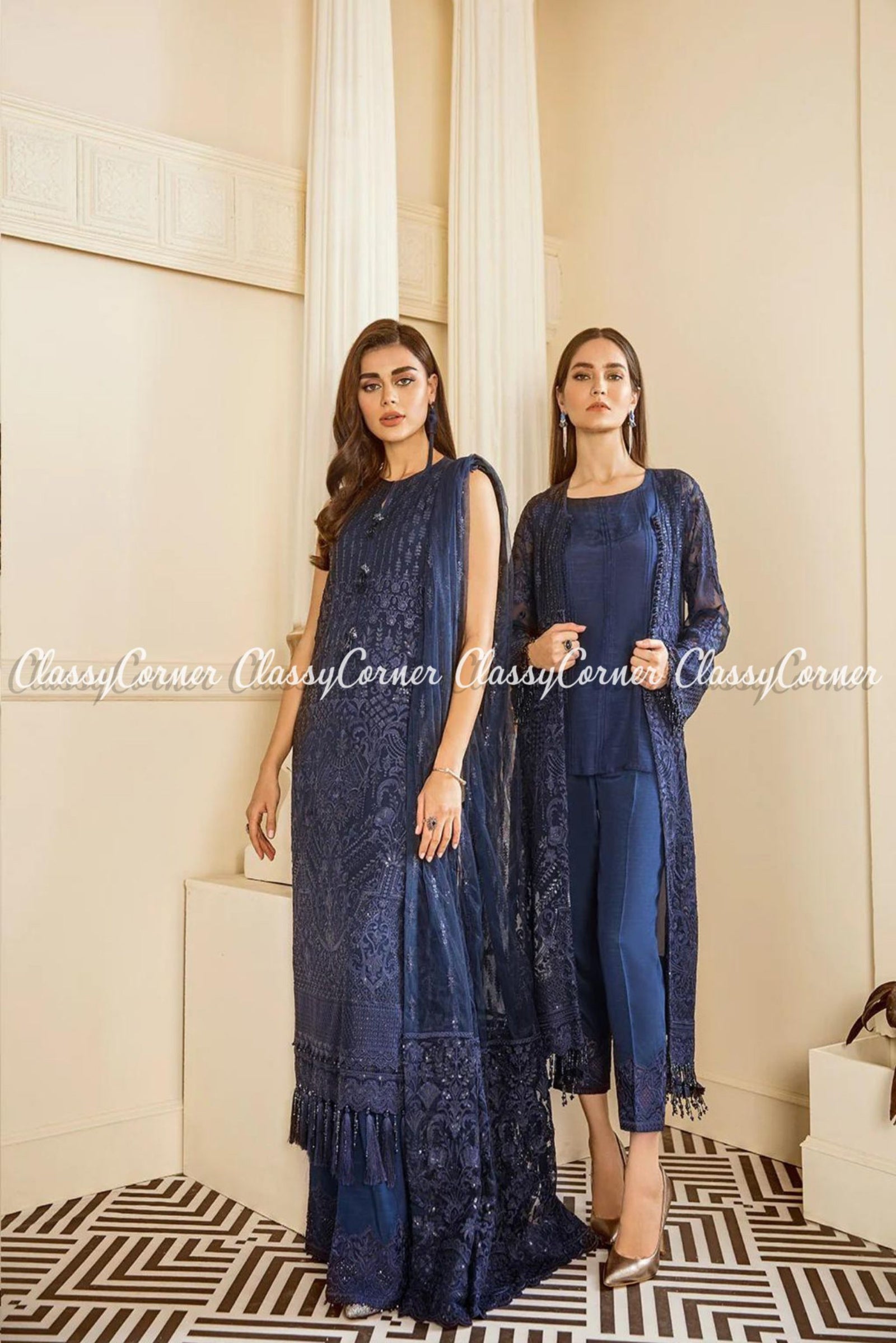 $539.99 AUDDark Blue Chiffon Embroidered Party Wear Gown Salwar Kameez