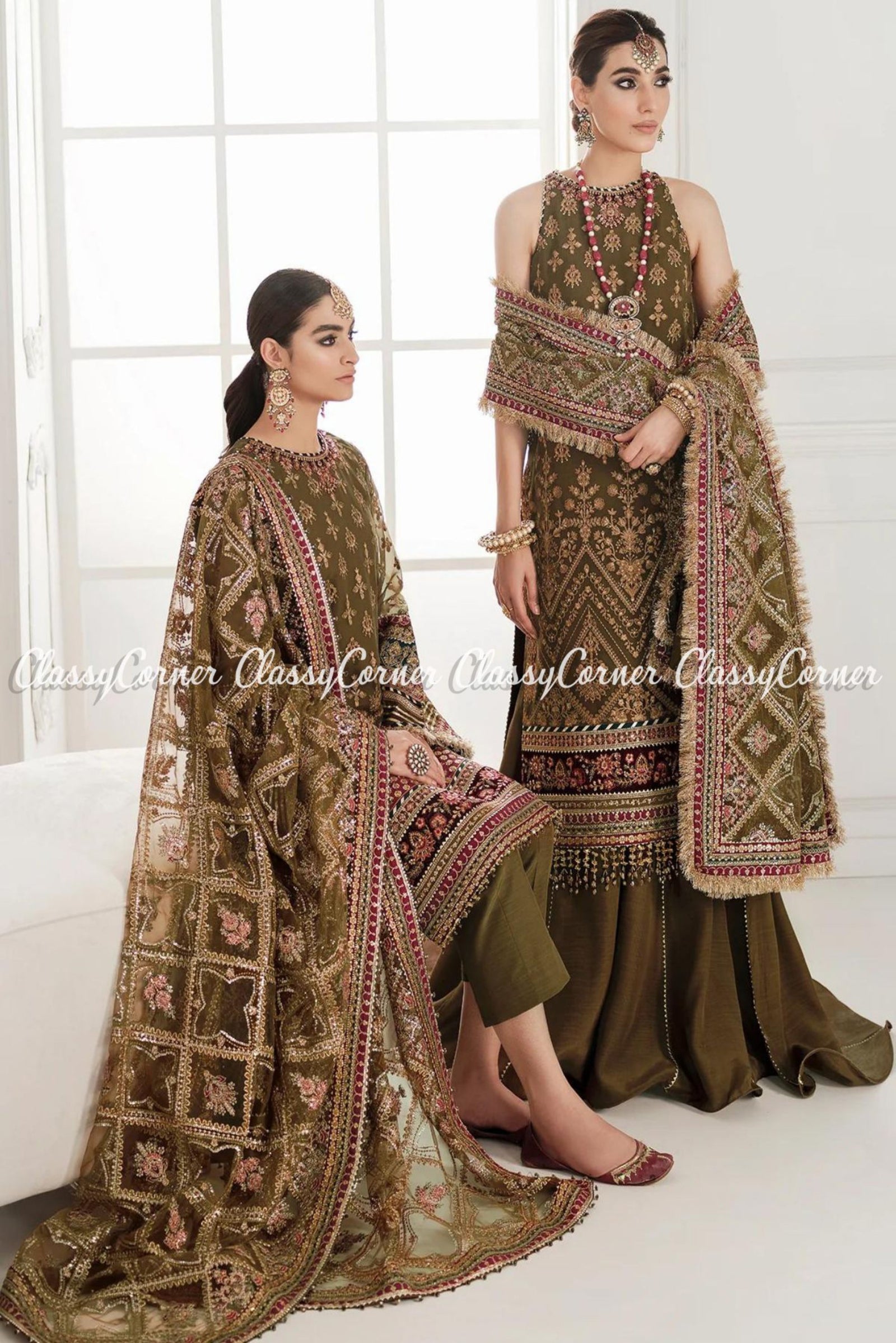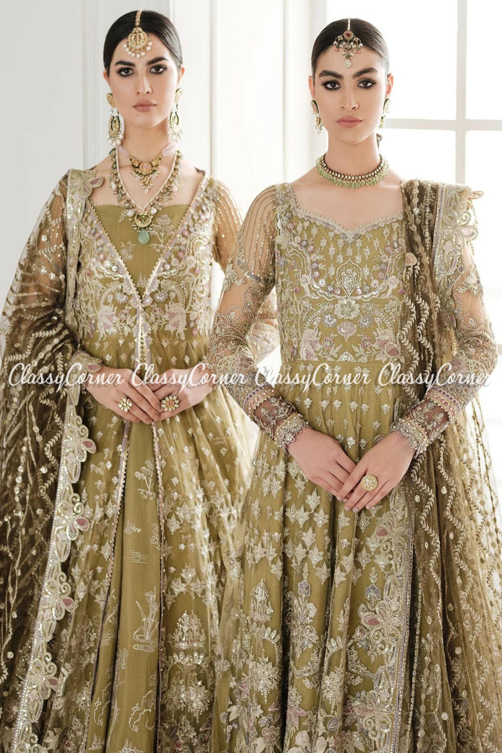 $659.99 AUDOlive Green Net Embroidered Party Wear Gown Outfits