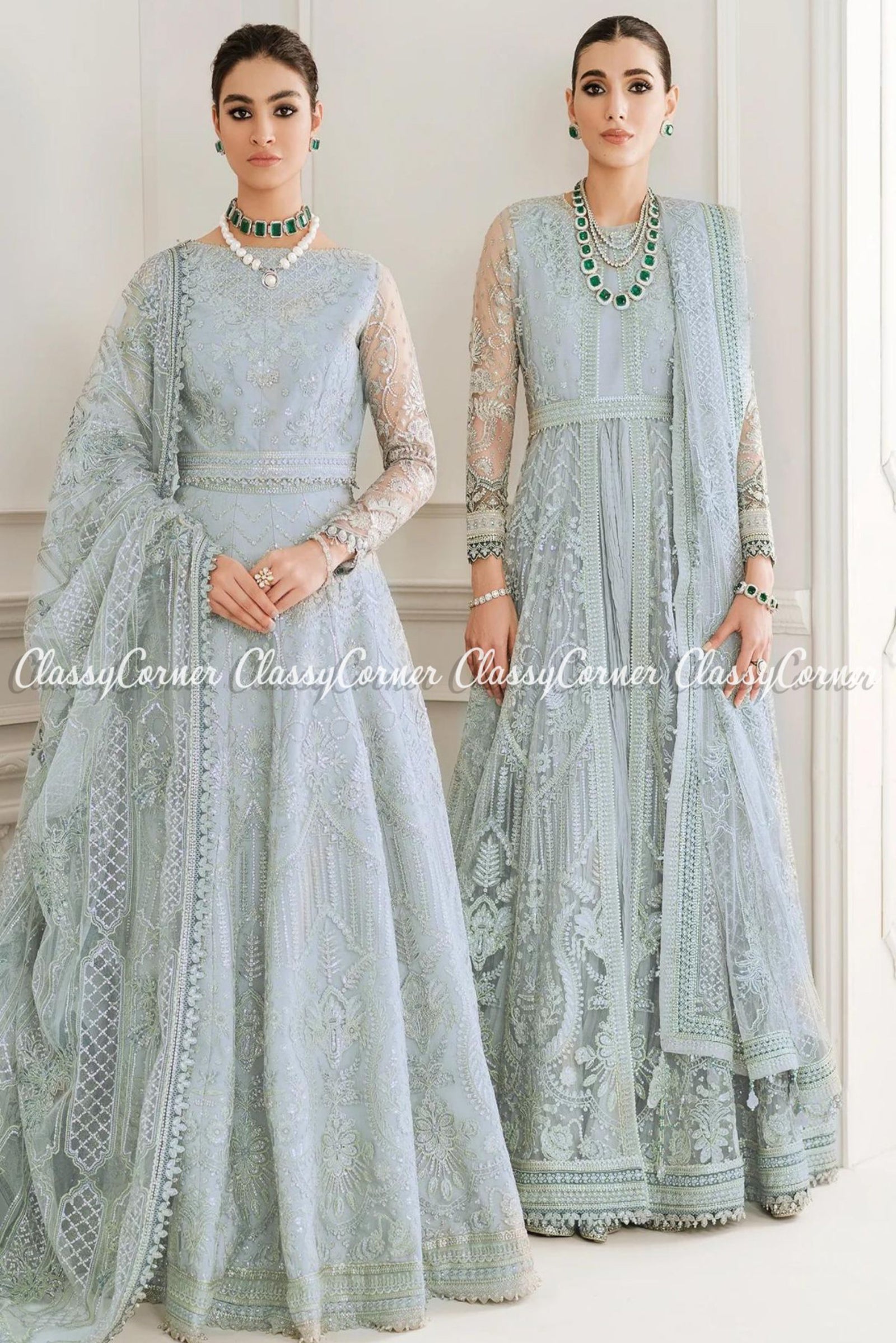 $679.99 AUDBrown Blue Net Embroidered Pakistani Gown Maxi Outfits