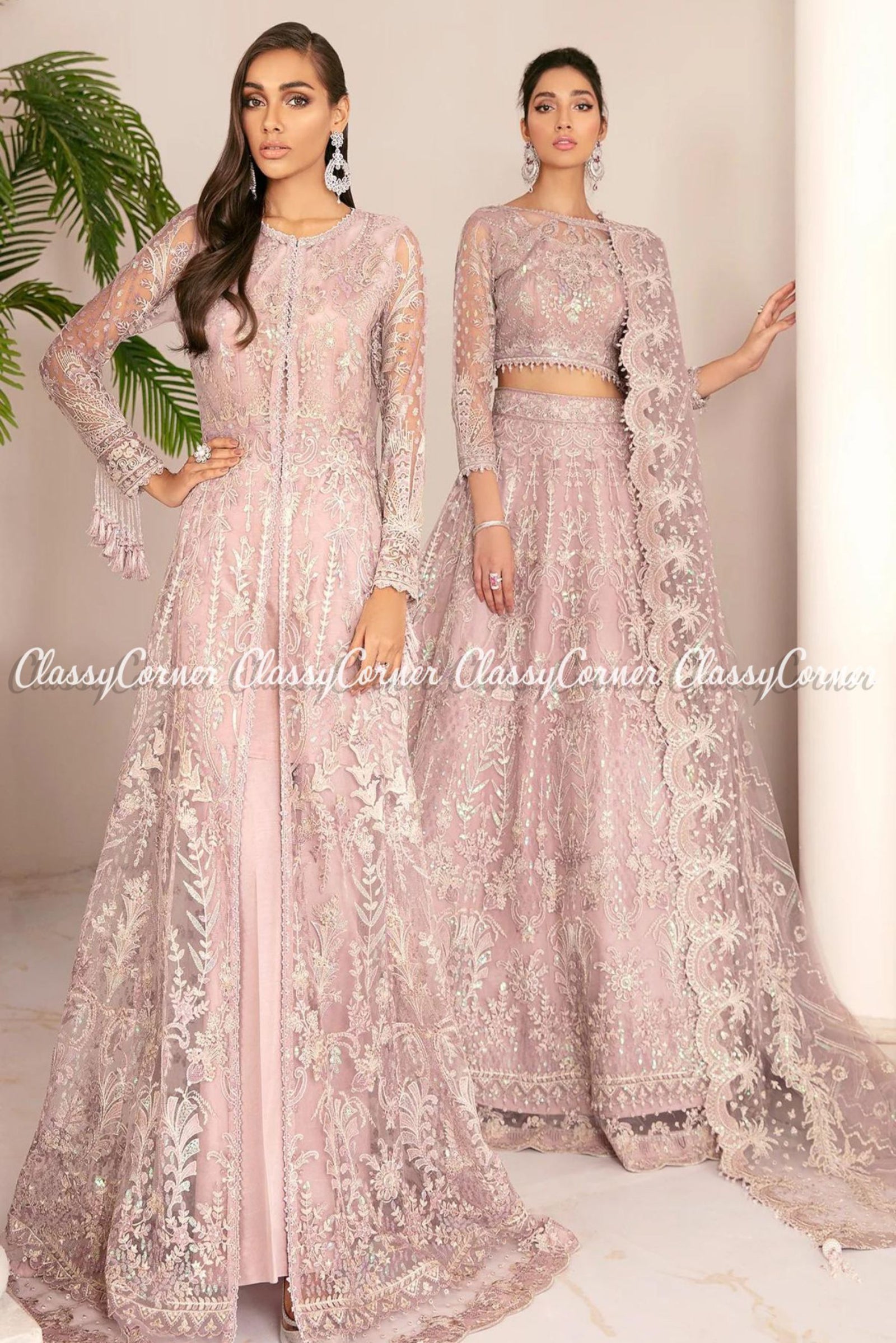$659.99 AUDPakistani Light Pink Net Embroidered Gown Lehenga