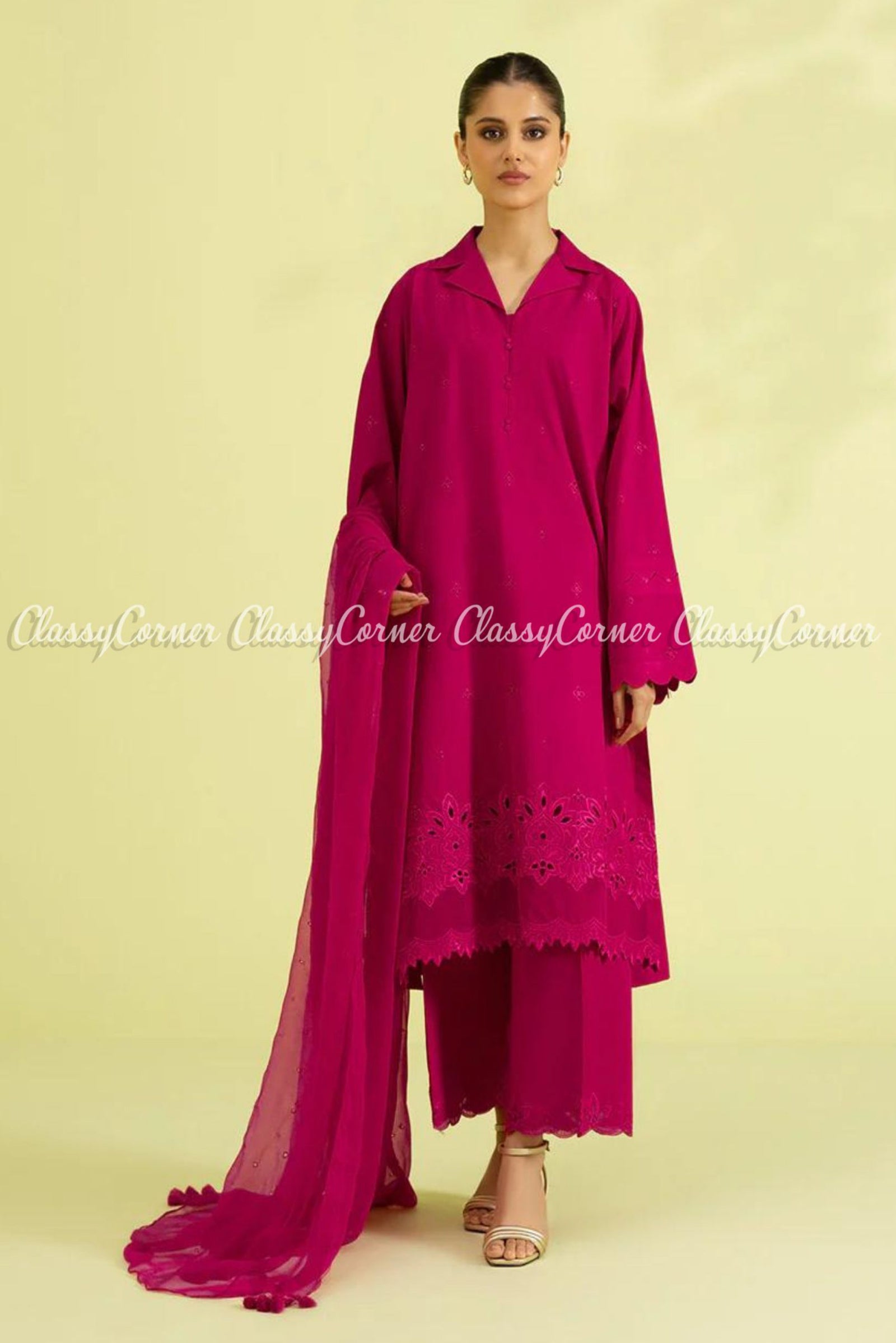 Magenta Cambric Embroidered Formal Wear Salwar Kameez