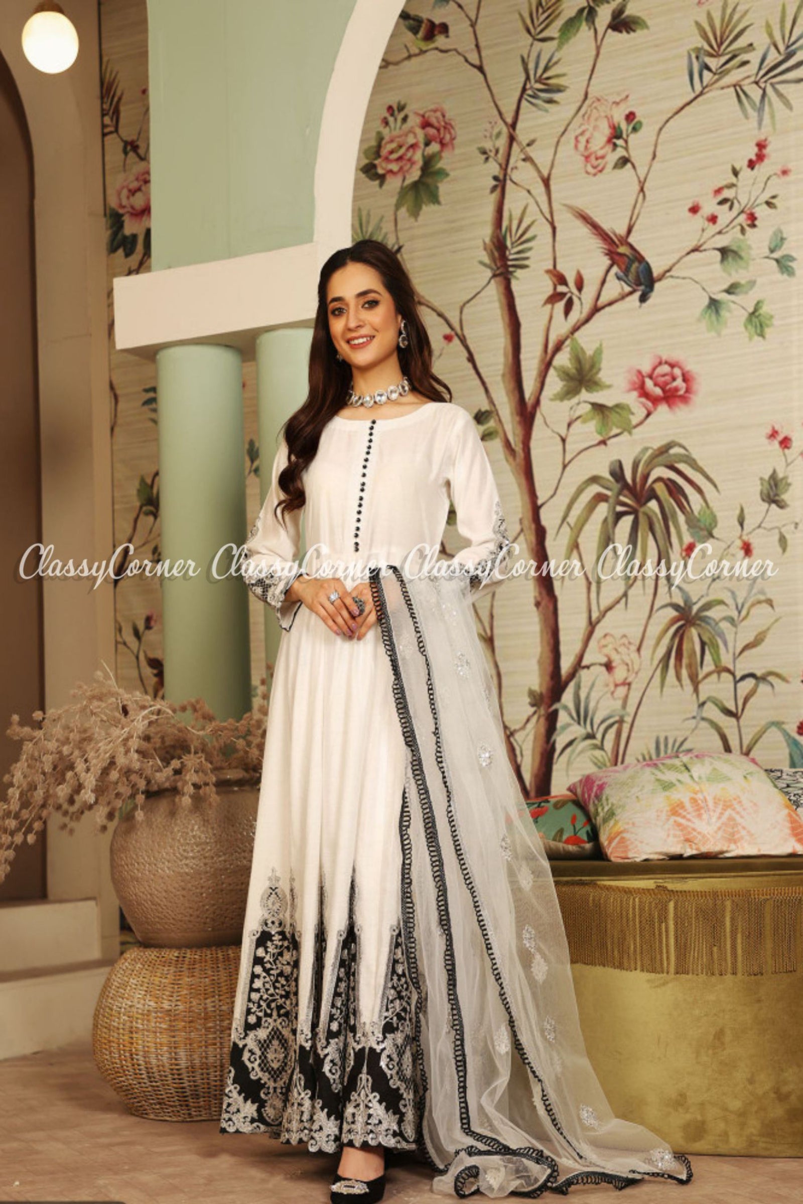 $394.99 AUDPlain White Chiffon Pakistani Maxi Frock Dress