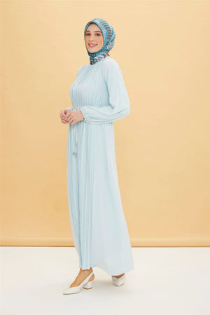 Ice Blue Front Pleated Dress